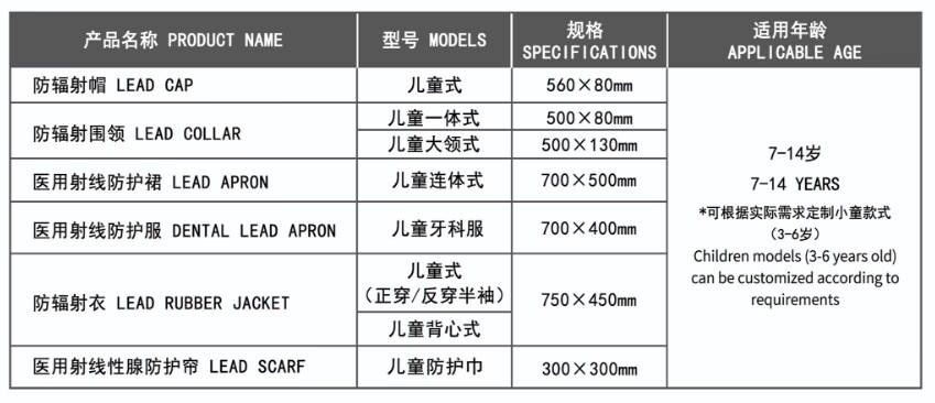 兒童射線防護服,左右兩側各設計可調節大小的魔術貼。鉛圍脖和鉛帽,也使用粘貼魔術貼。隨時調整各個位置大小。