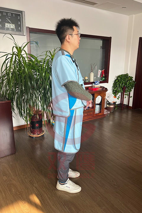 操作完成后,應把X射線防護服平放,或用鉛衣架掛起,不能折疊,以免長期折疊產生露線現象。